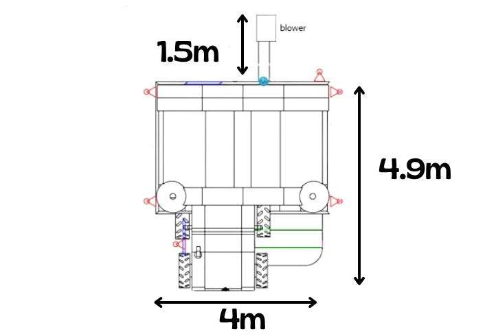 | Afmetingen (L × B × H) |  4,9 m x 4,0 m x 3,3 m |
