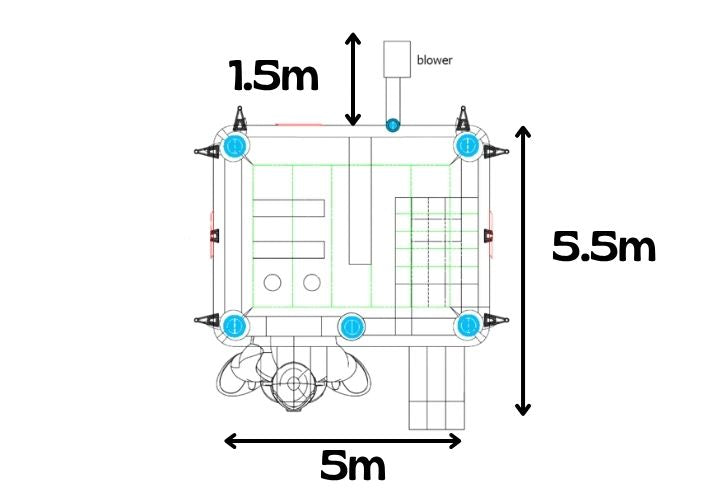 Afmetingen (L × B × H) | 5,5 m x 5,0 m x 3,7 m |